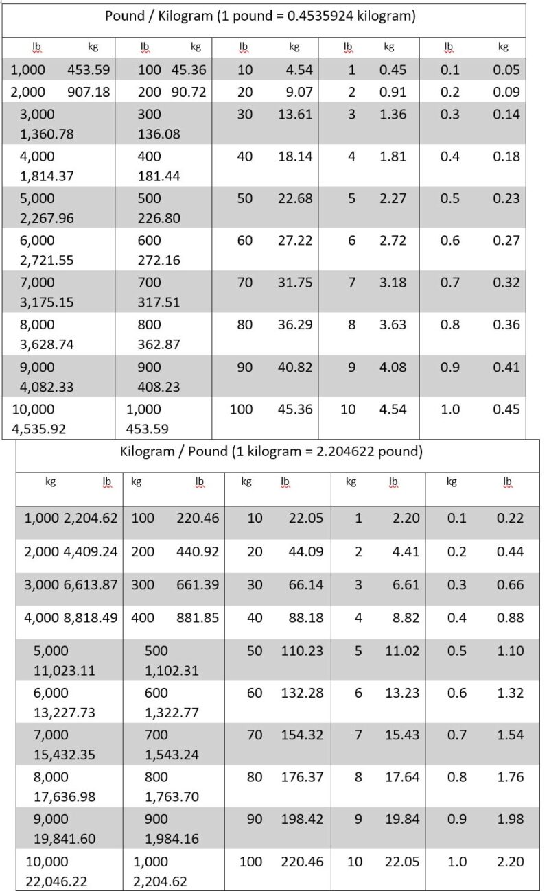 Pound – Kilogram ve Ons – Gram Dönüşüm Tabloları